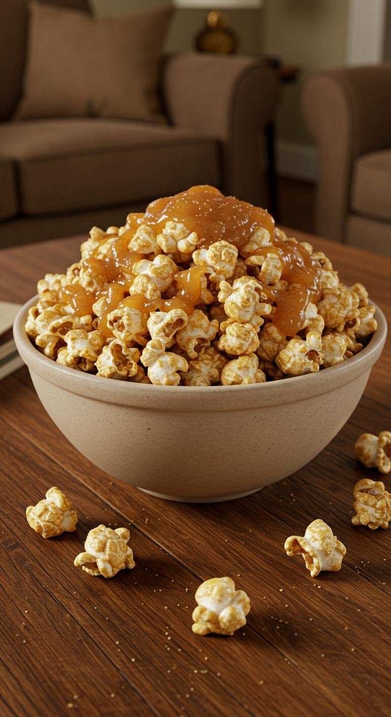 - Pop popcorn and drizzle with melted apple butter, tossing to coat.