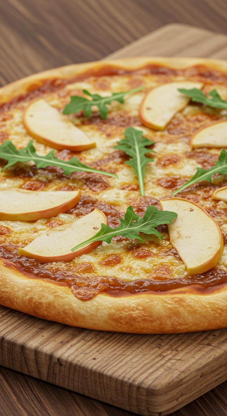 - Spread apple butter on the pizza crust, sprinkle cheese on top.