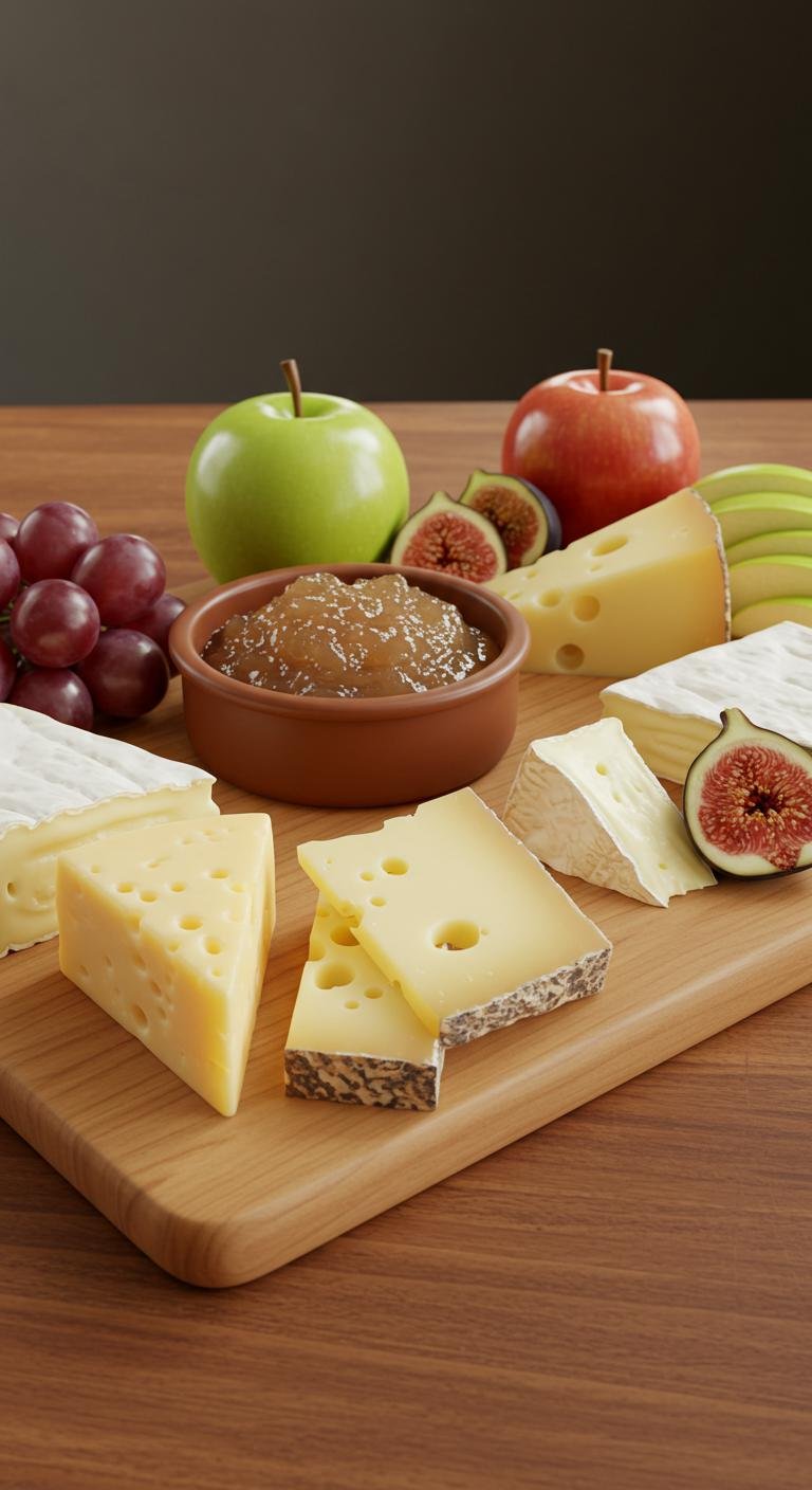- Arrange cheeses, apple butter, crackers, and fruits on a platter.