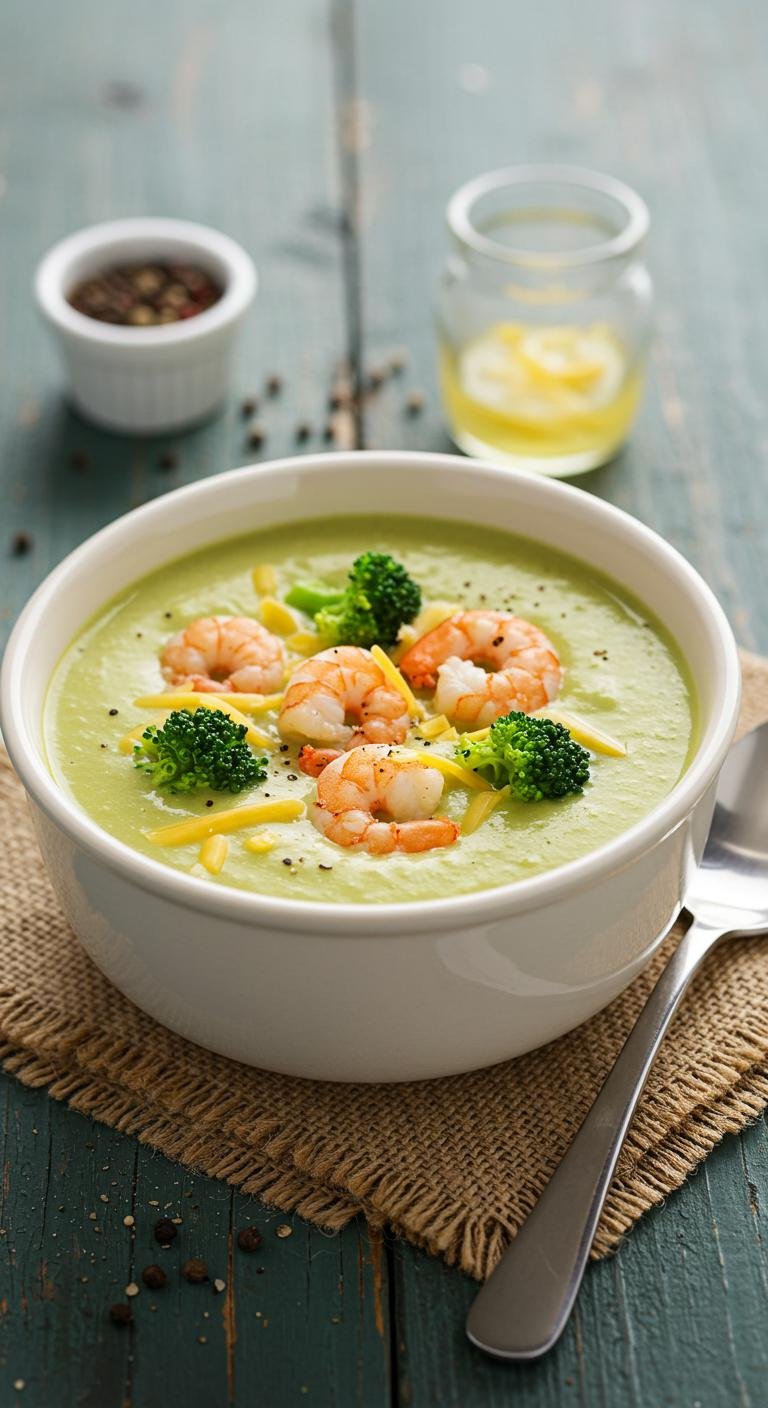 Cheesy Broccoli Soup with Shrimp