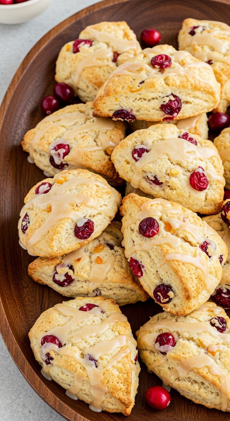 - Stir in cranberries and zest. Add egg and cream, mixing until just combined.