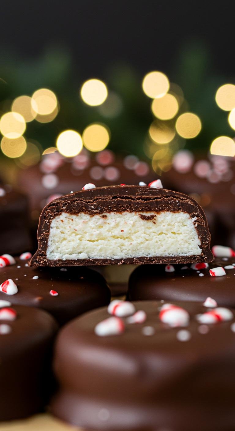 - Once set, melt the white chocolate, mix in the crushed candy canes, and layer on top of the dark chocolate.