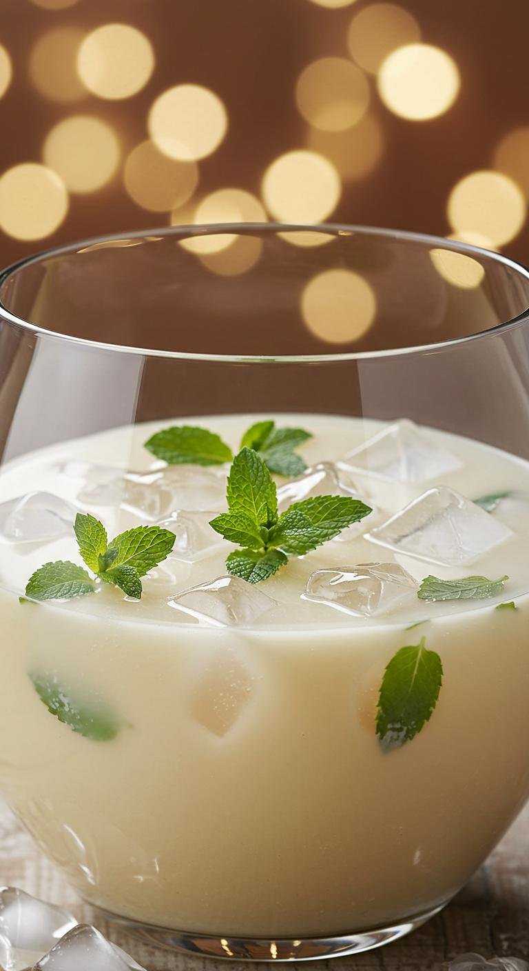 - In a bowl, mix vanilla almond milk and mint sparkling water.