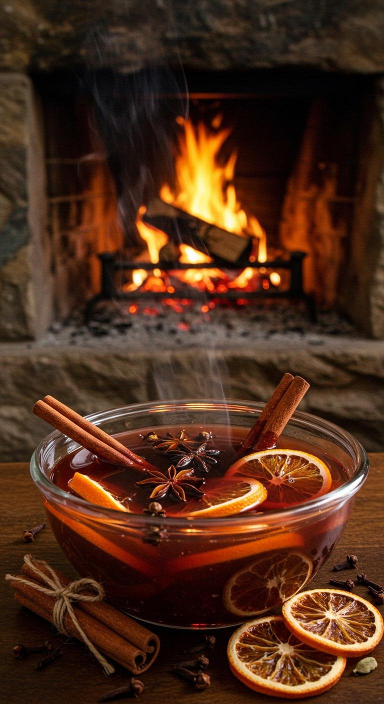 - In a pot, combine apple cider, orange juice, cinnamon sticks, and star anise.