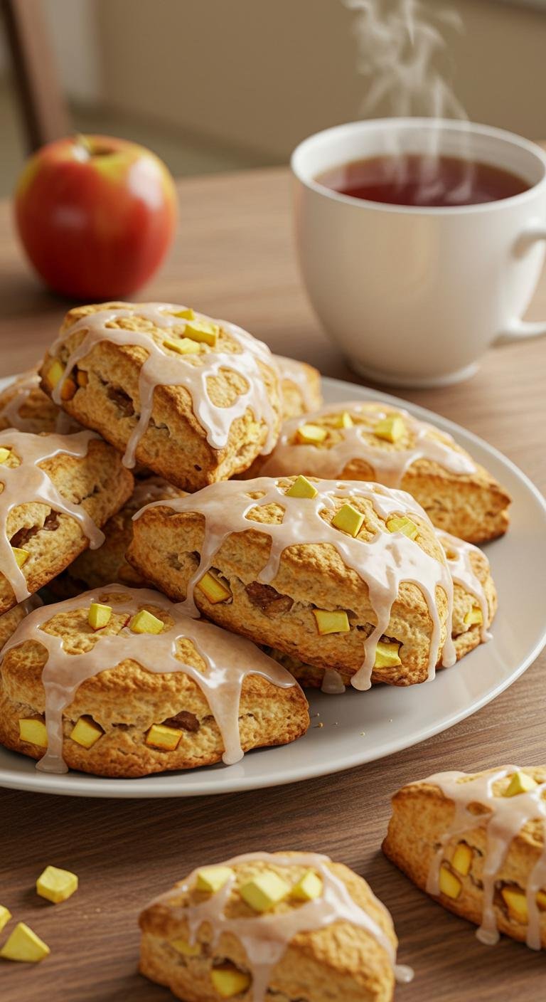 - Add apples, egg, and cream, then shape into scones and bake at 400°F for 15-20 minutes.