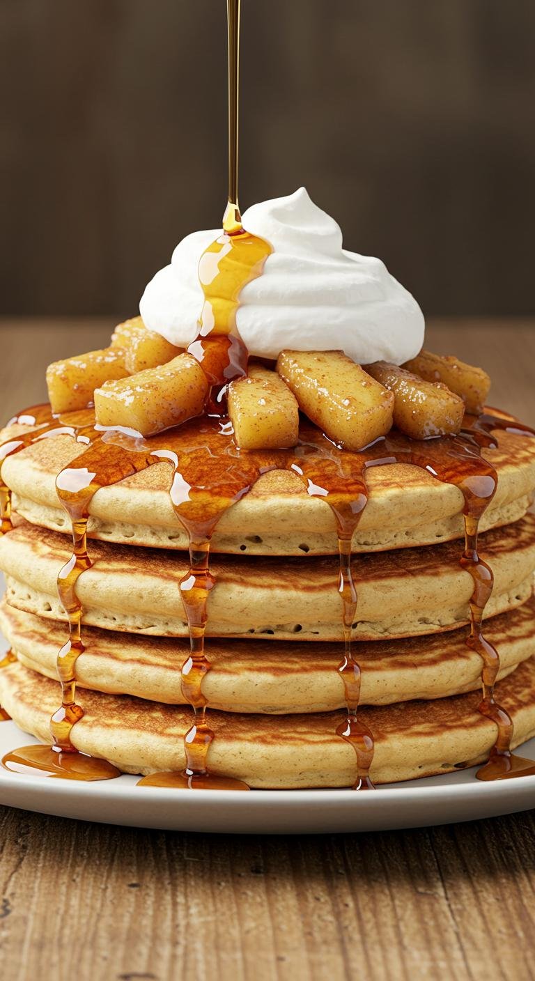 - Pour onto a hot griddle, top with apple slices, and flip once bubbles form.