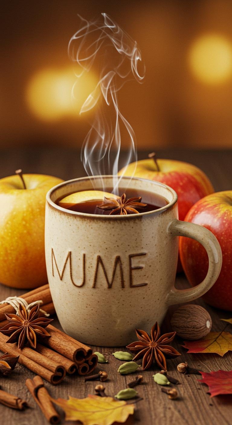 - Stir gently and garnish with a cinnamon stick and apple slice.