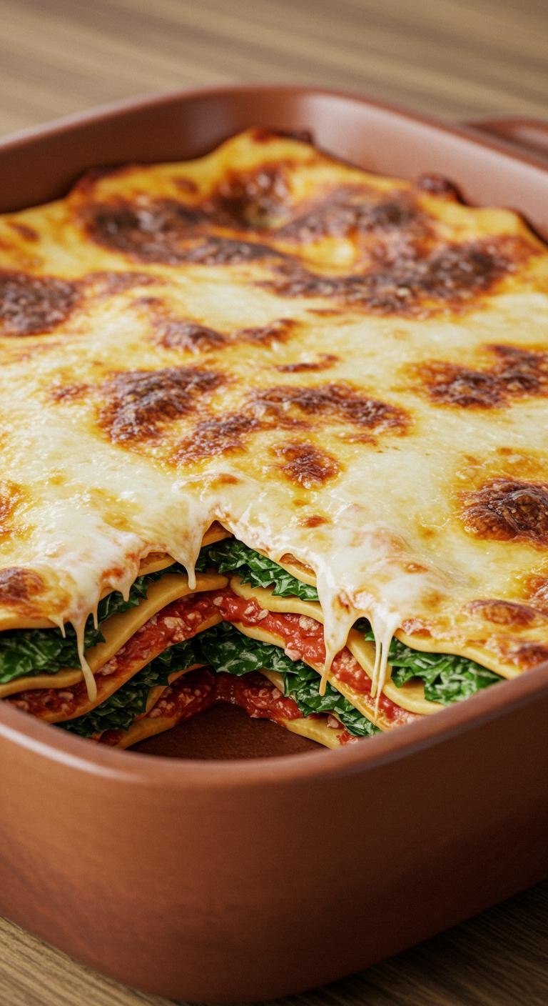 This meatless lasagna is a delight for cheese lovers.