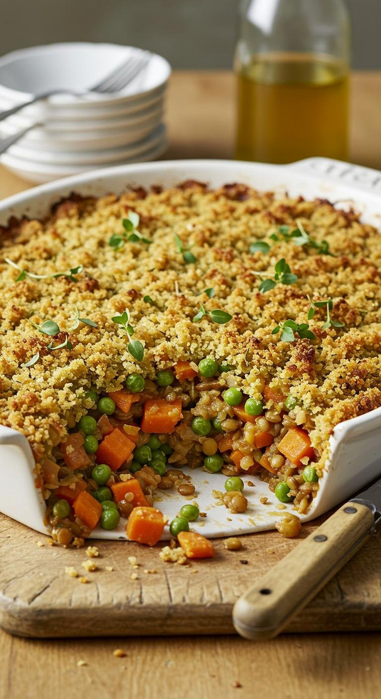 - Sprinkle breadcrumbs on top and bake for 45 minutes until lentils are soft.