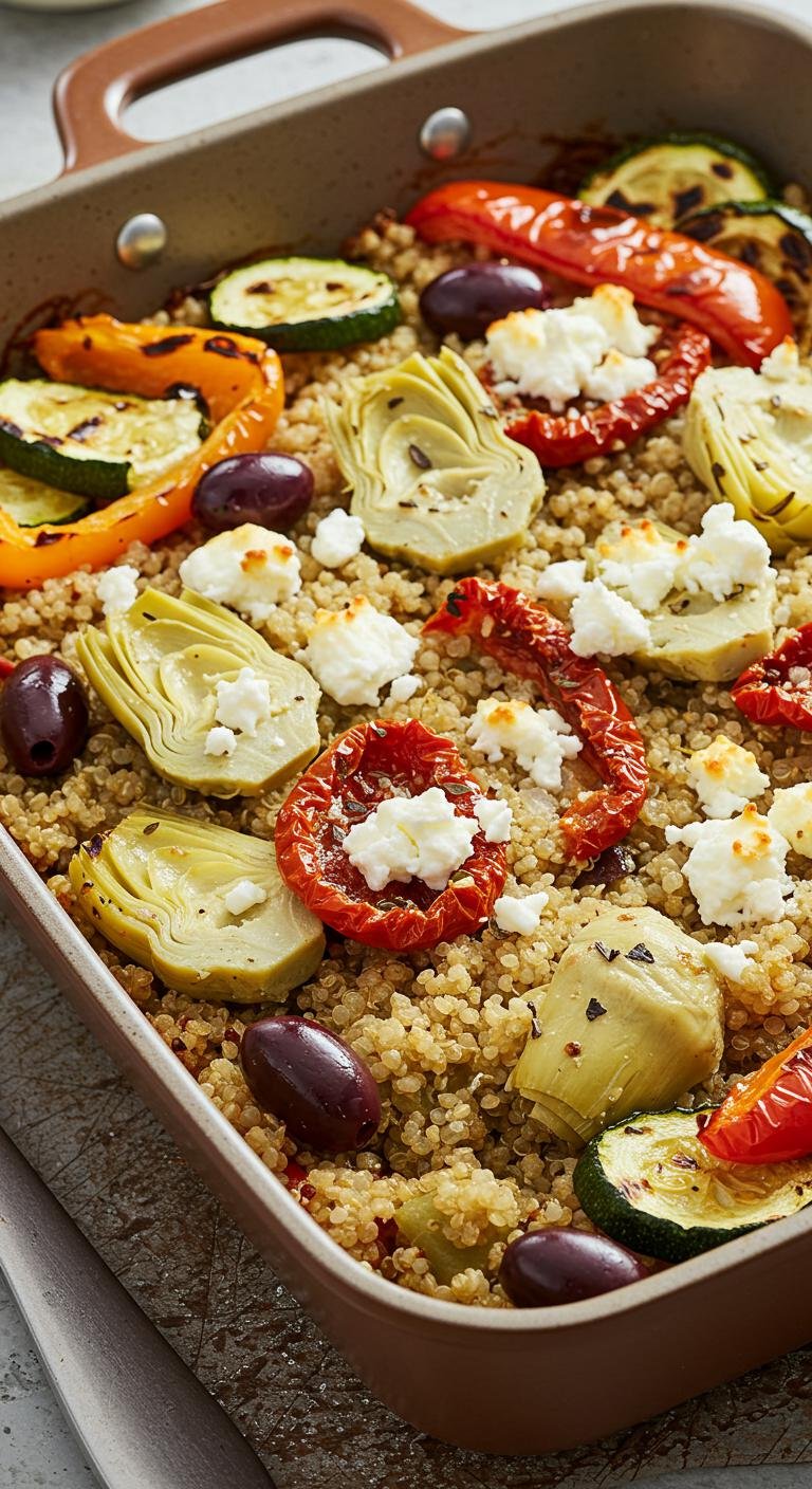 - Bake for 30-35 minutes until quinoa is fluffy. Top with remaining feta before serving.