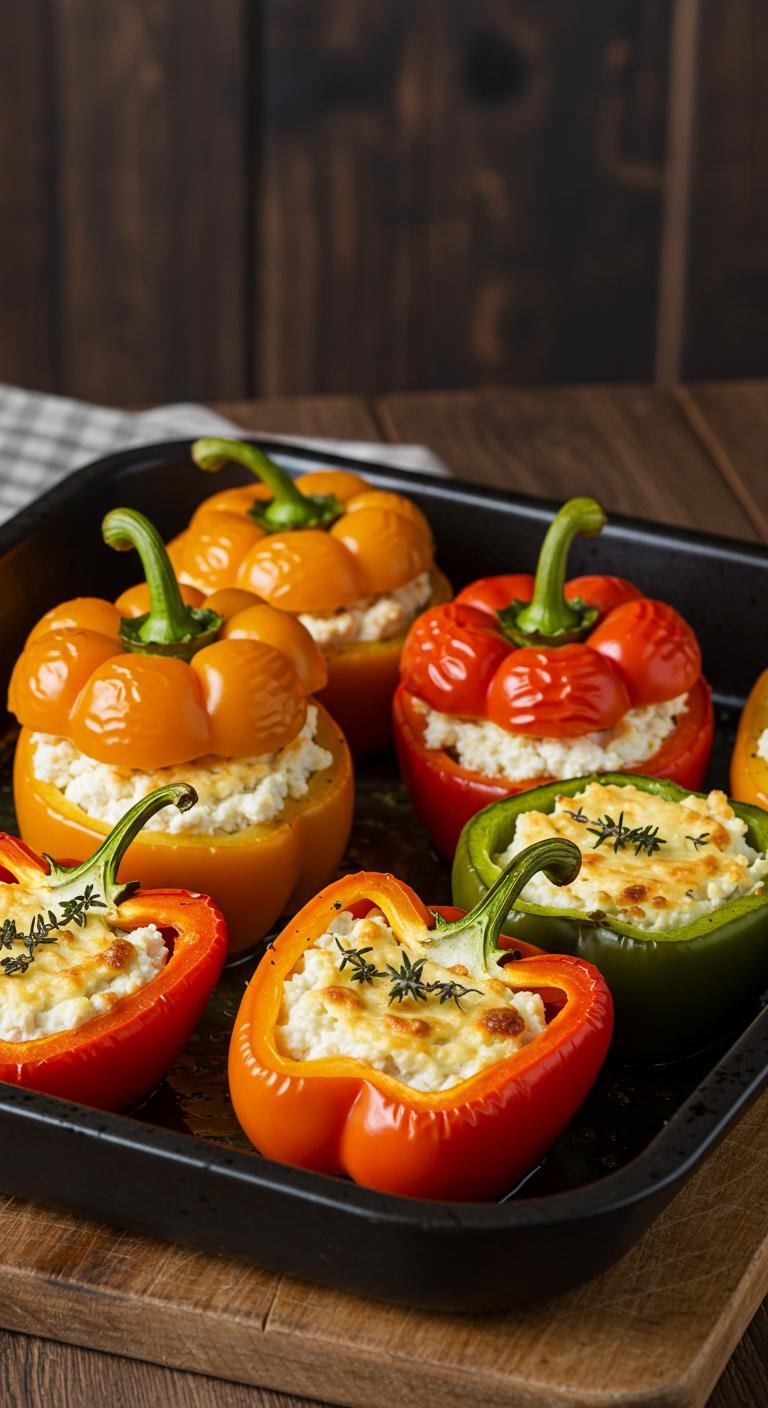 - Stuff each pepper half and place in a baking dish. Bake for 25 minutes.