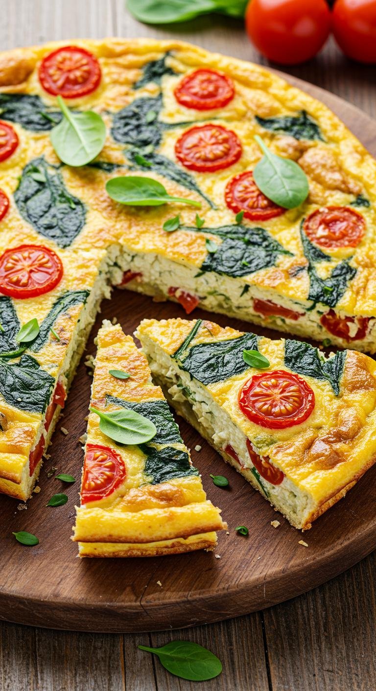 - Whisk eggs and mix in cottage cheese, spinach, and tomatoes.