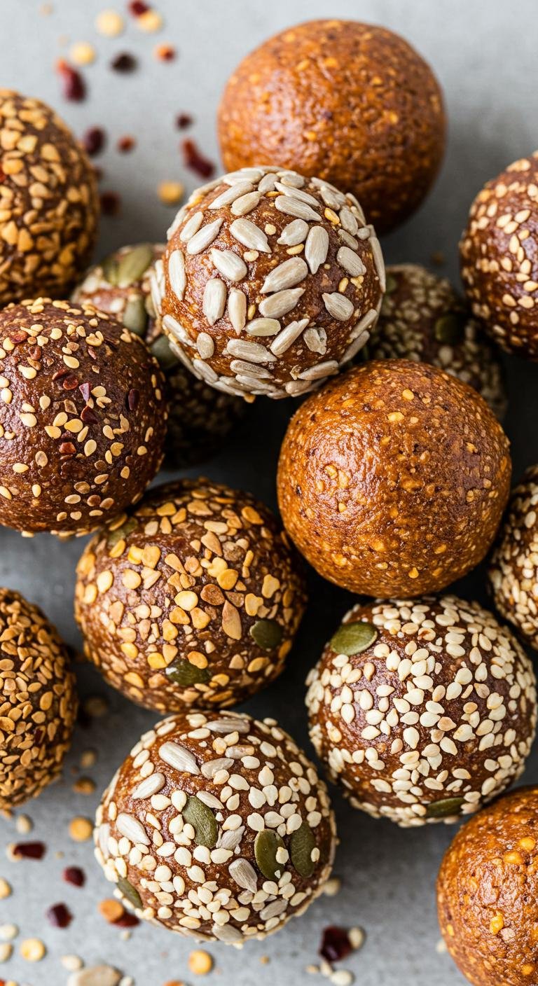 - Shape into bite-sized balls and roll in more seeds.