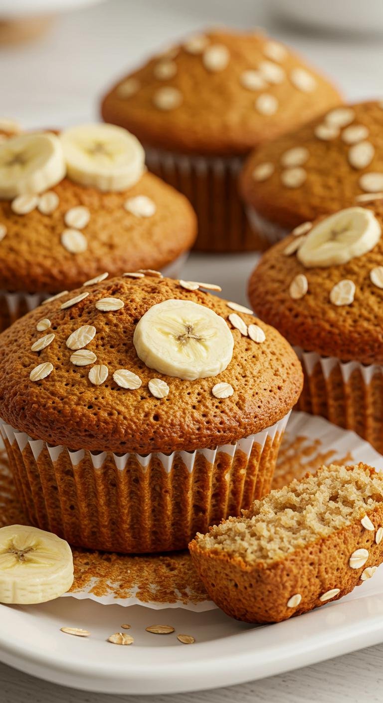 These fluffy muffins are filled with wholesome oats and ripe bananas.