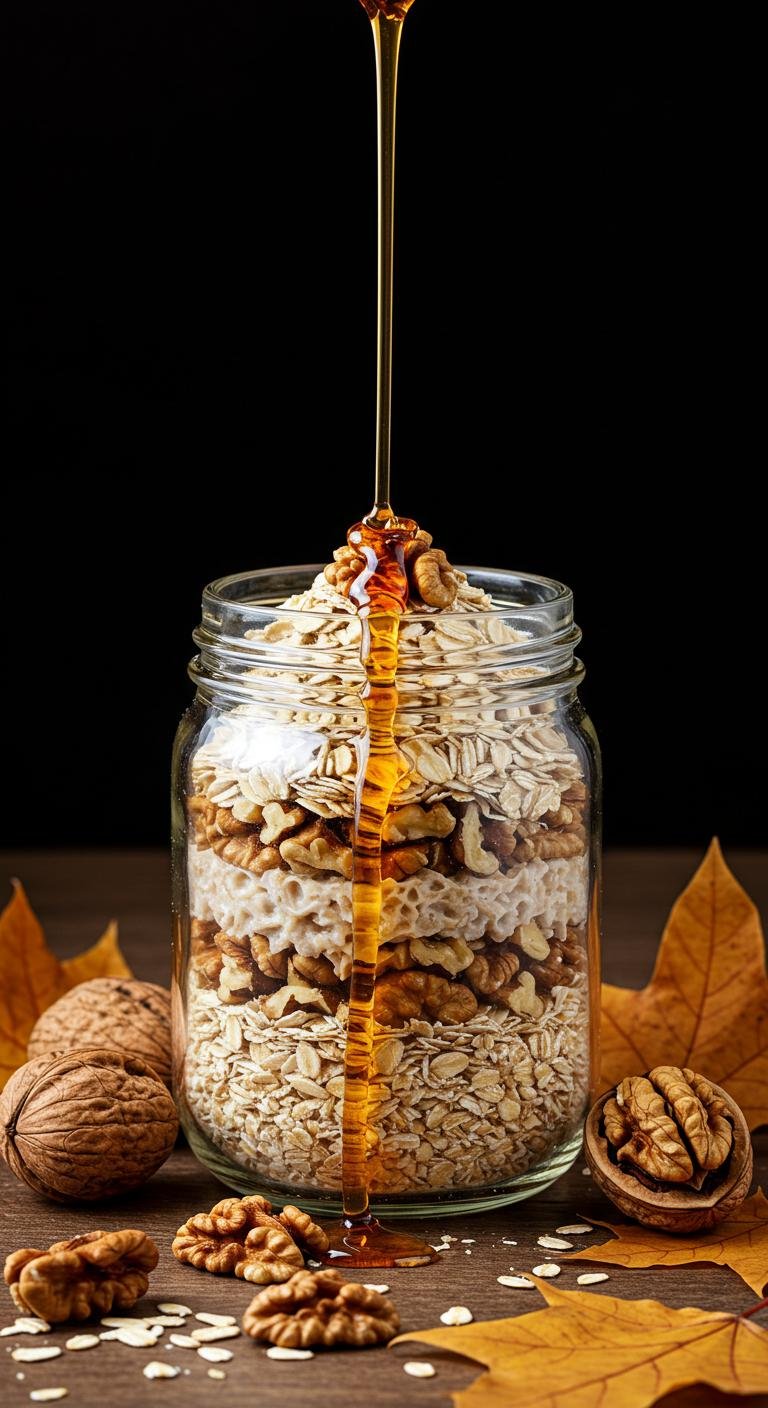 - Top with walnuts and drizzle with maple syrup before refrigerating.