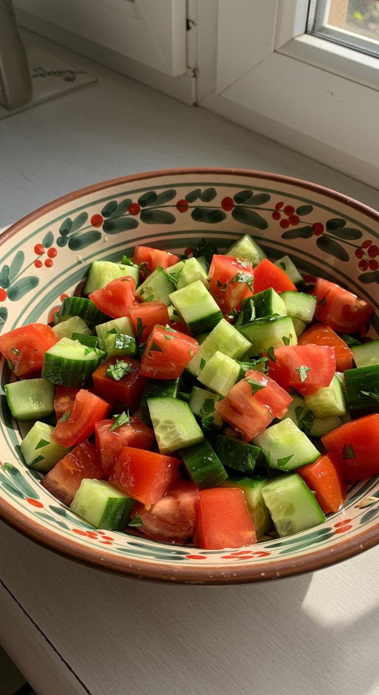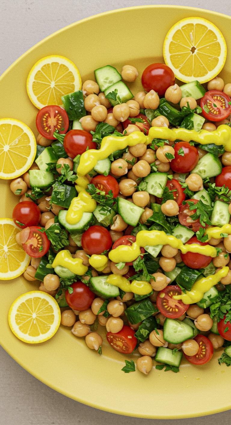 - Combine chickpeas, cucumber, tomatoes, and parsley in a bowl.