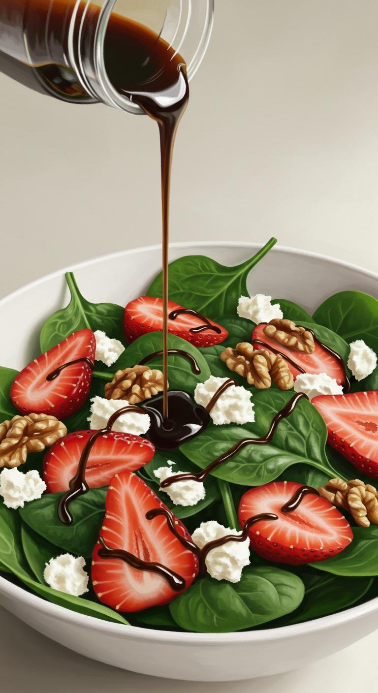 - In a bowl, toss spinach, strawberries, and walnuts together.