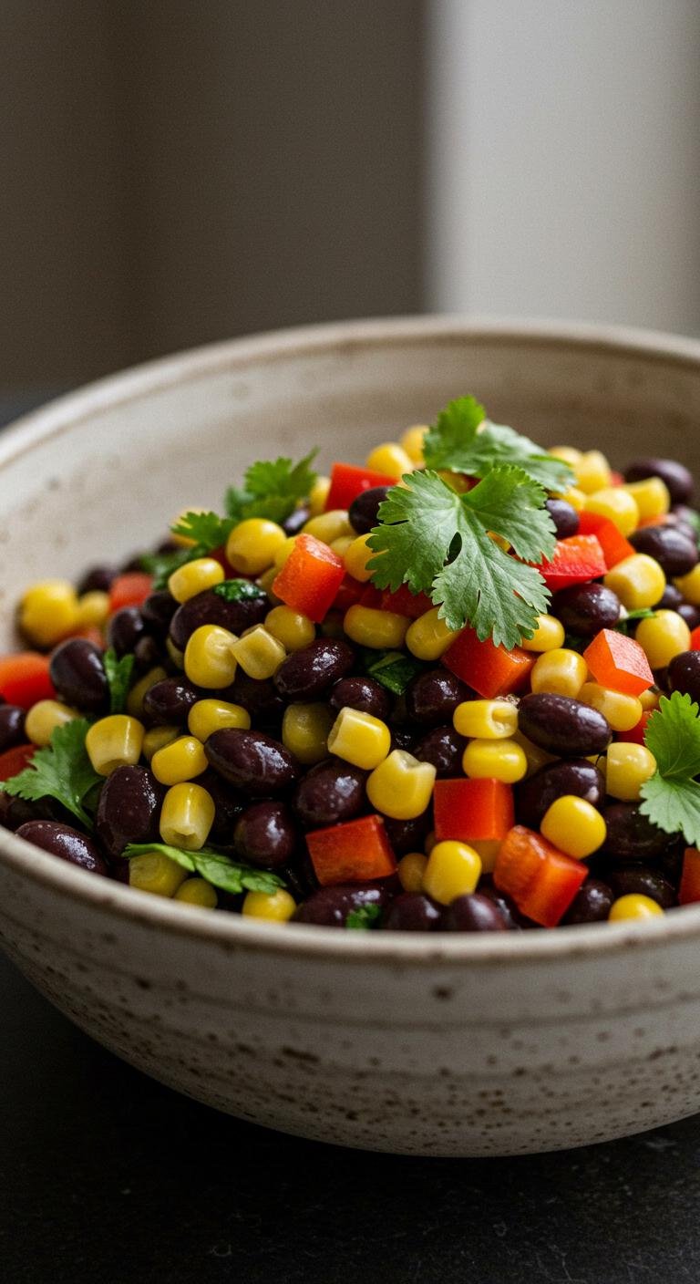 - In a bowl, mix black beans, corn, bell pepper, and cilantro.