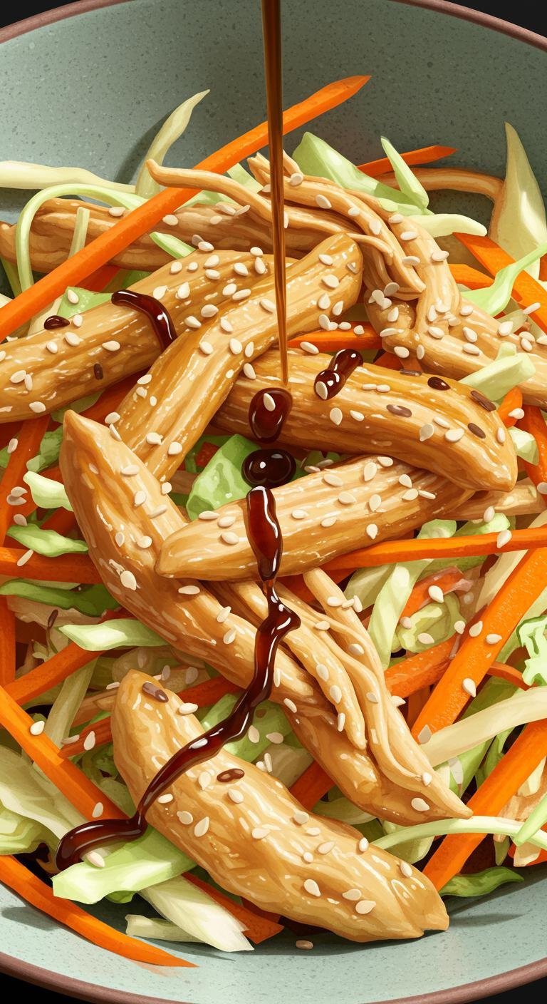 - Combine shredded chicken, cabbage, and carrots in a large bowl.