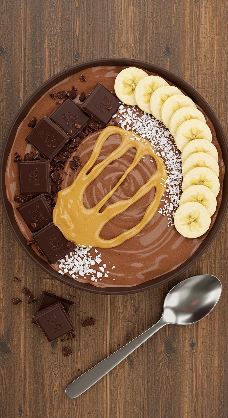 - Blend the banana, cocoa powder, and almond milk until creamy.