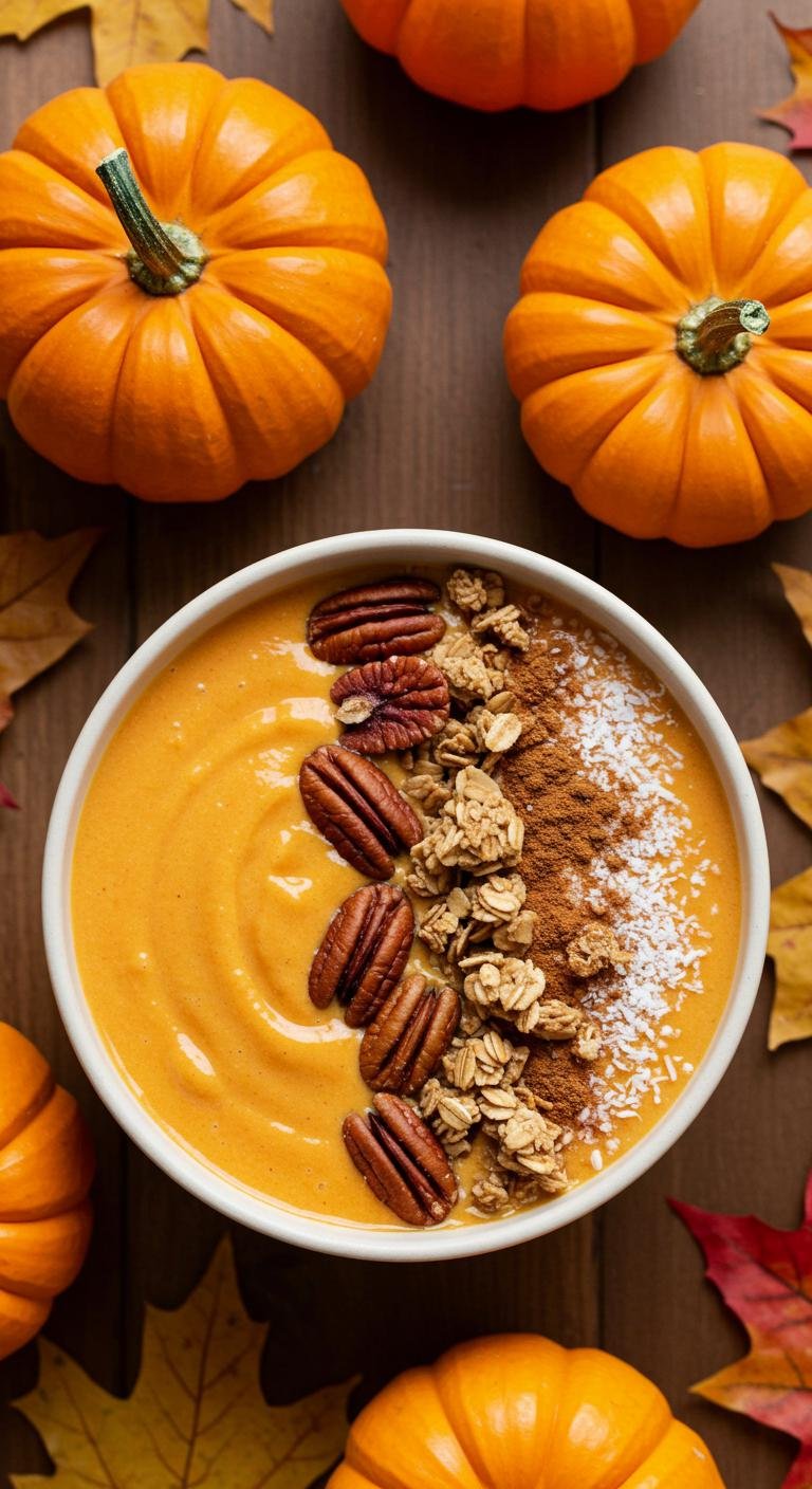 - Blend pumpkin, banana, almond milk, and cinnamon until creamy.