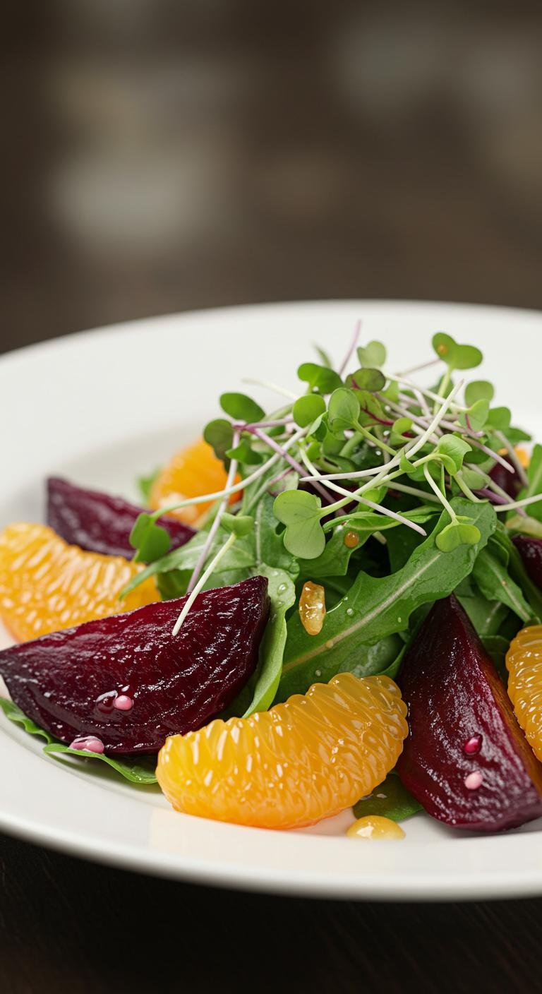- Toss mixed greens, beets, and orange segments together in a bowl.