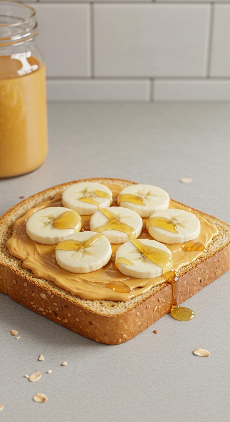 - Spread peanut butter, top with banana slices, and drizzle honey.
