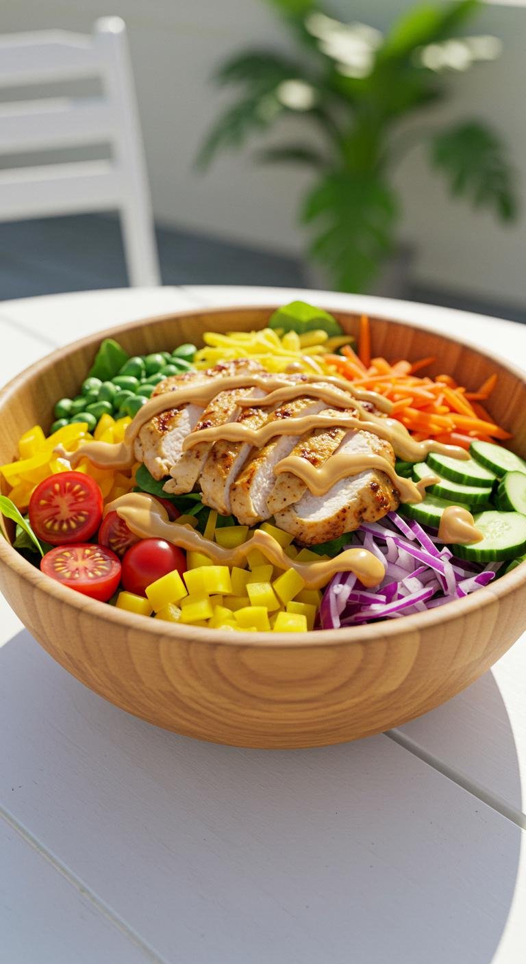 - Toss chicken and vegetables in the dressing.
