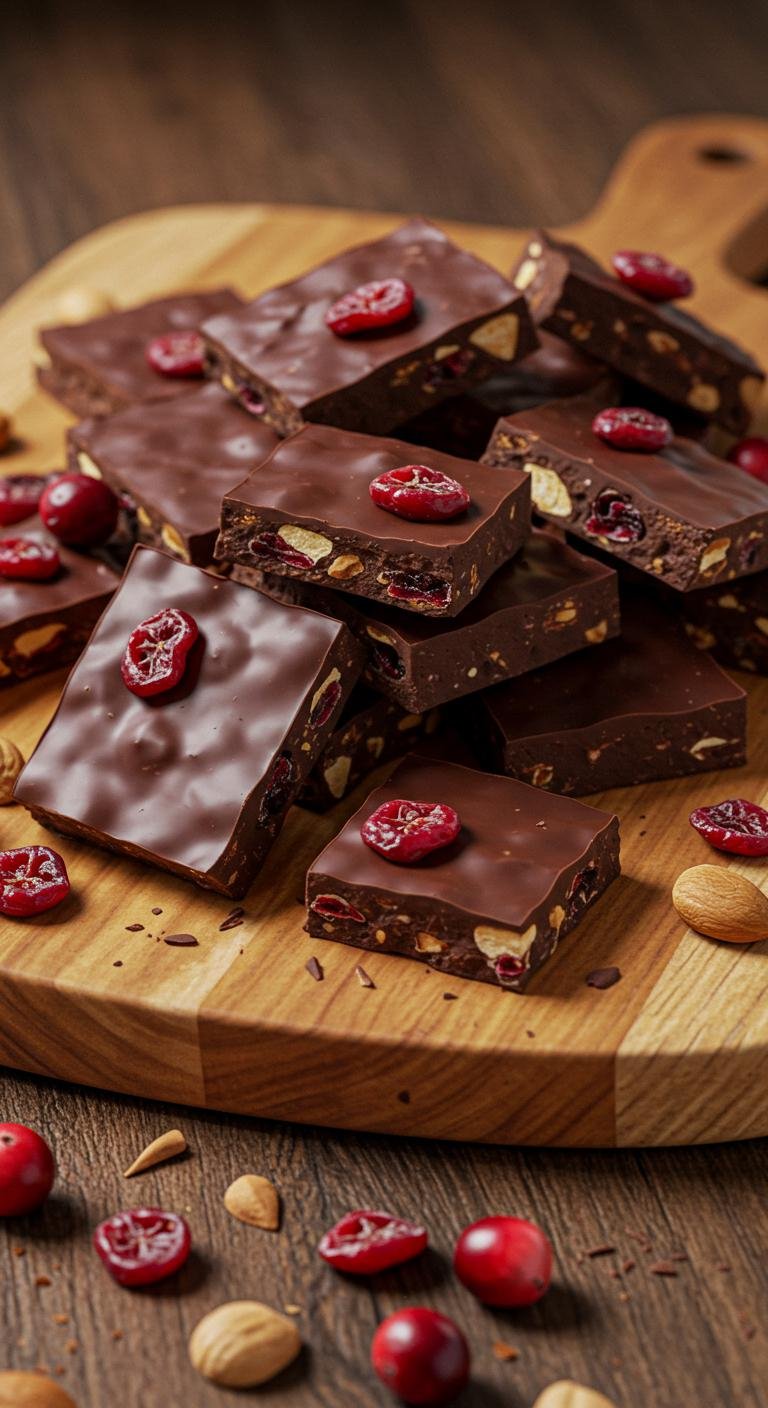 - Press the mixture into a pan and melt dark chocolate to drizzle on top.