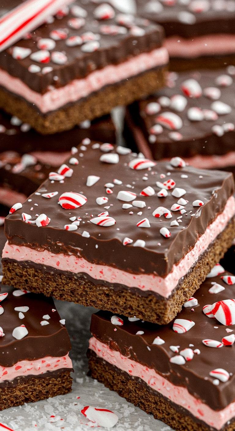 - Pour melted chocolate over the crust and sprinkle with candy canes. Chill until set.