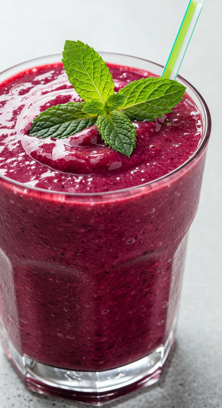 - Blend banana, spinach, almond milk, and berries until smooth.