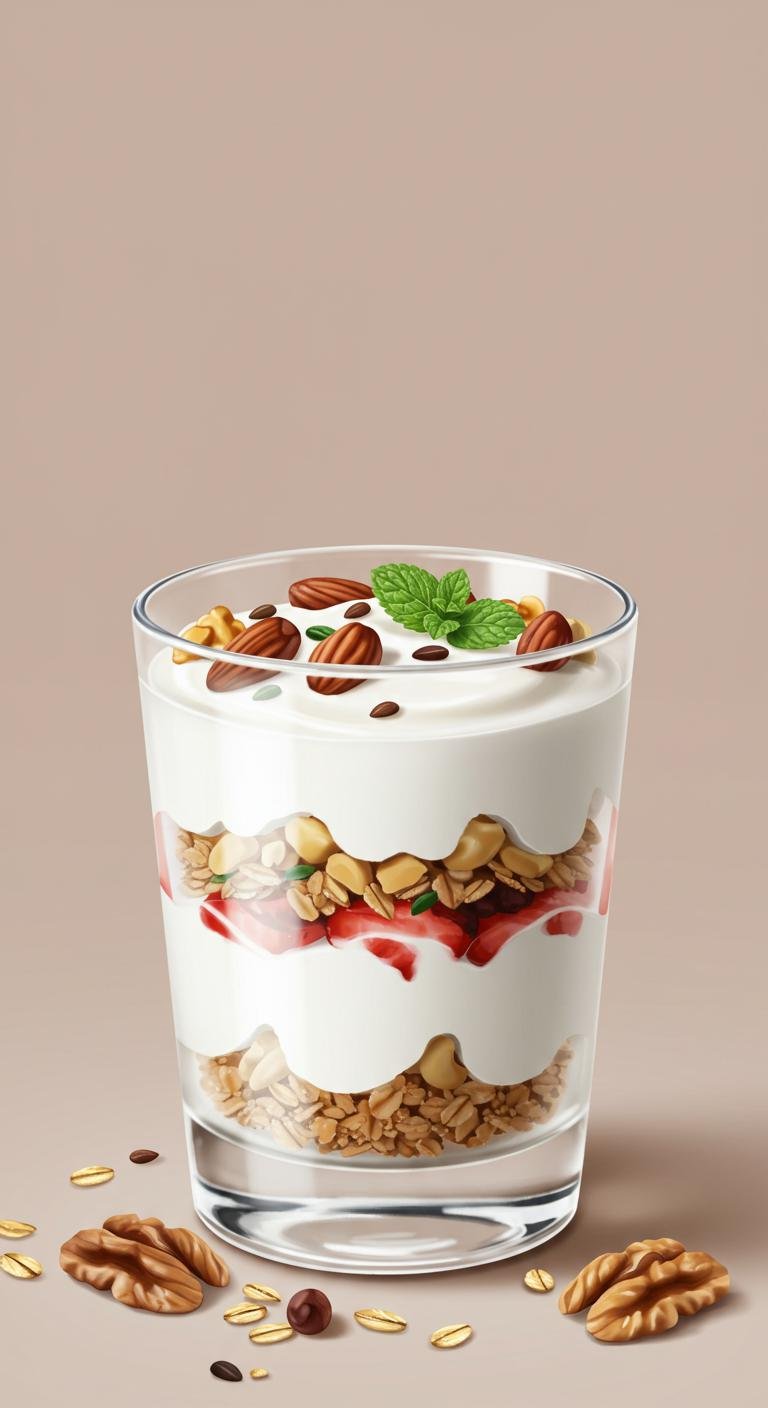 - In a glass, layer Greek yogurt, granola, and berries.