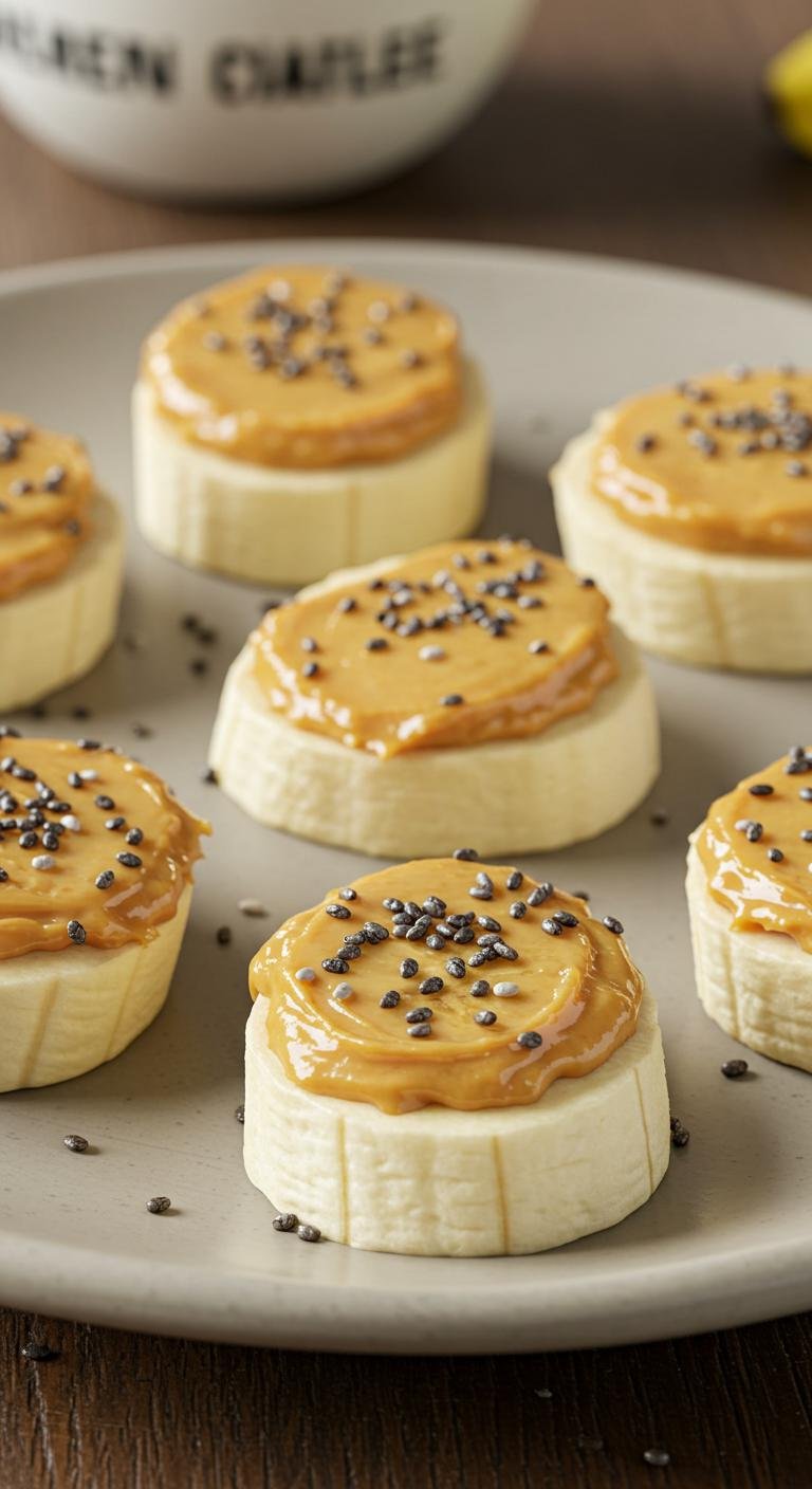 - Dust with chia seeds, sandwich with another banana slice, and enjoy!