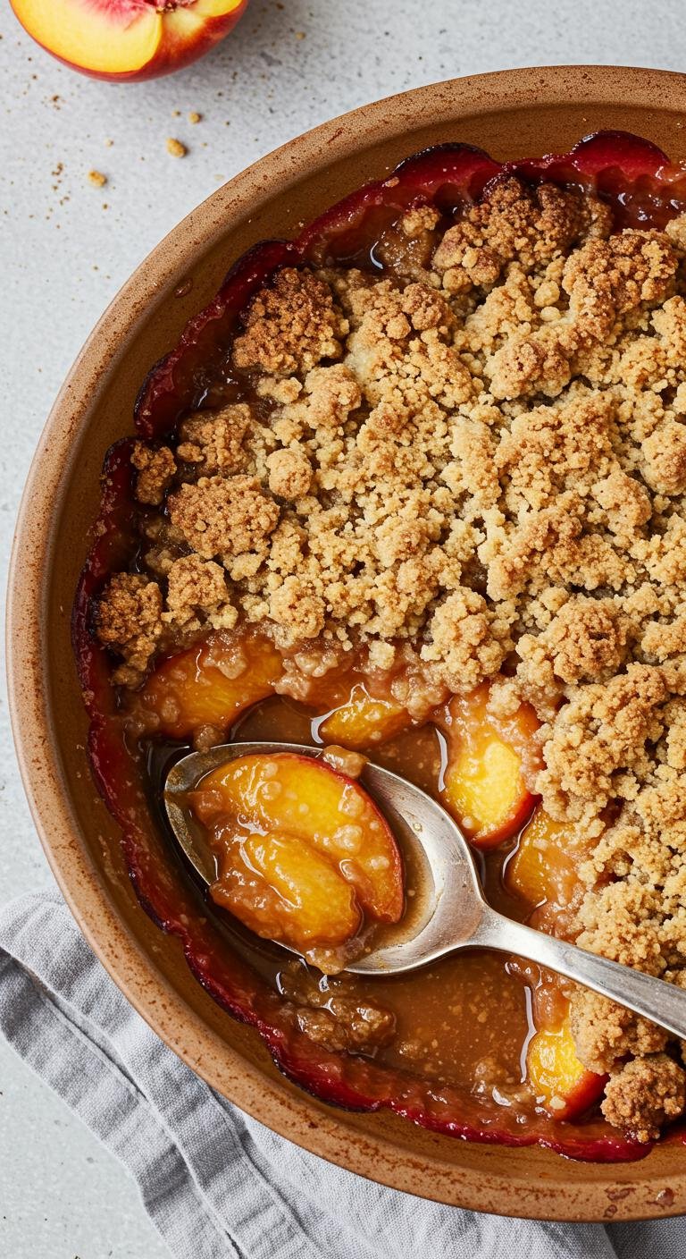 - Mix oats, ginger, and honey; sprinkle over peaches and bake for 20 minutes.