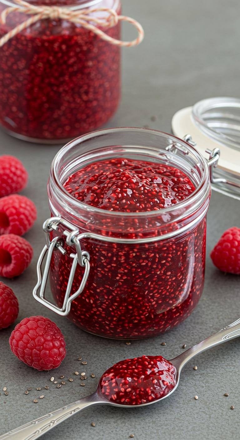 - Mash raspberries in a bowl, stir in chia seeds and sweetener.