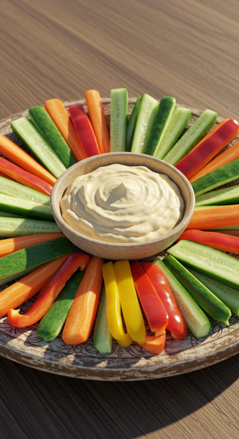 - Arrange veggie sticks around the bowl for dipping.