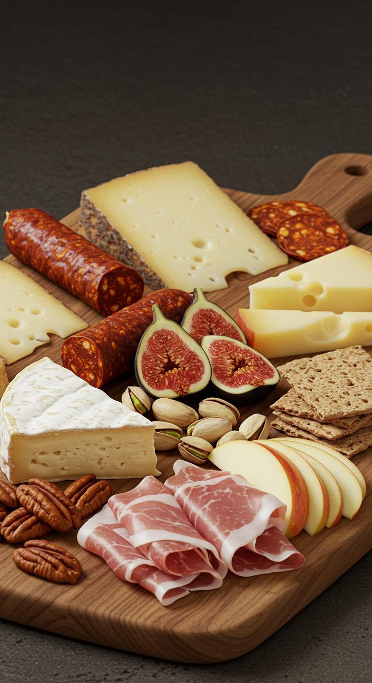 - Arrange cheese, meats, nuts, and fruits on a large board.