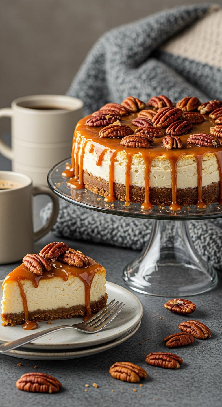 Indulge in creamy cheesecake mixed with pecan pie flavors!