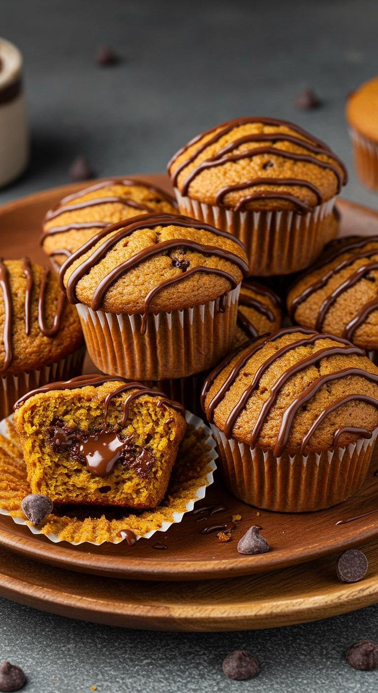 Rich chocolate meets pumpkin goodness in these delightful muffins.