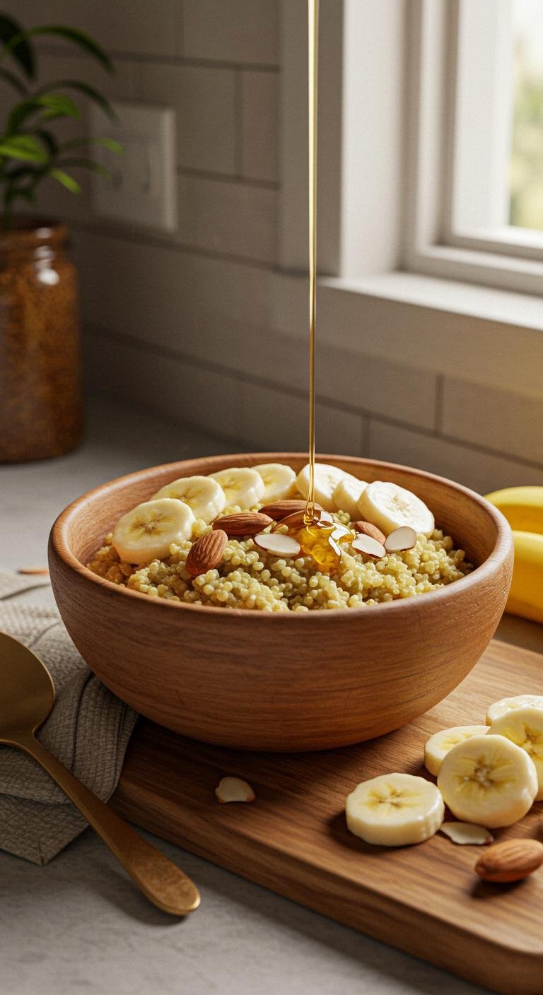 - In a bowl, mix quinoa and almond milk for a creamy texture.