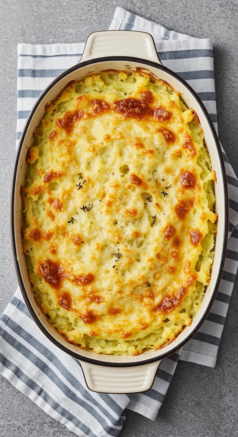 - Mix mashed veggies with cream, salt, and pepper; spread in a baking dish.