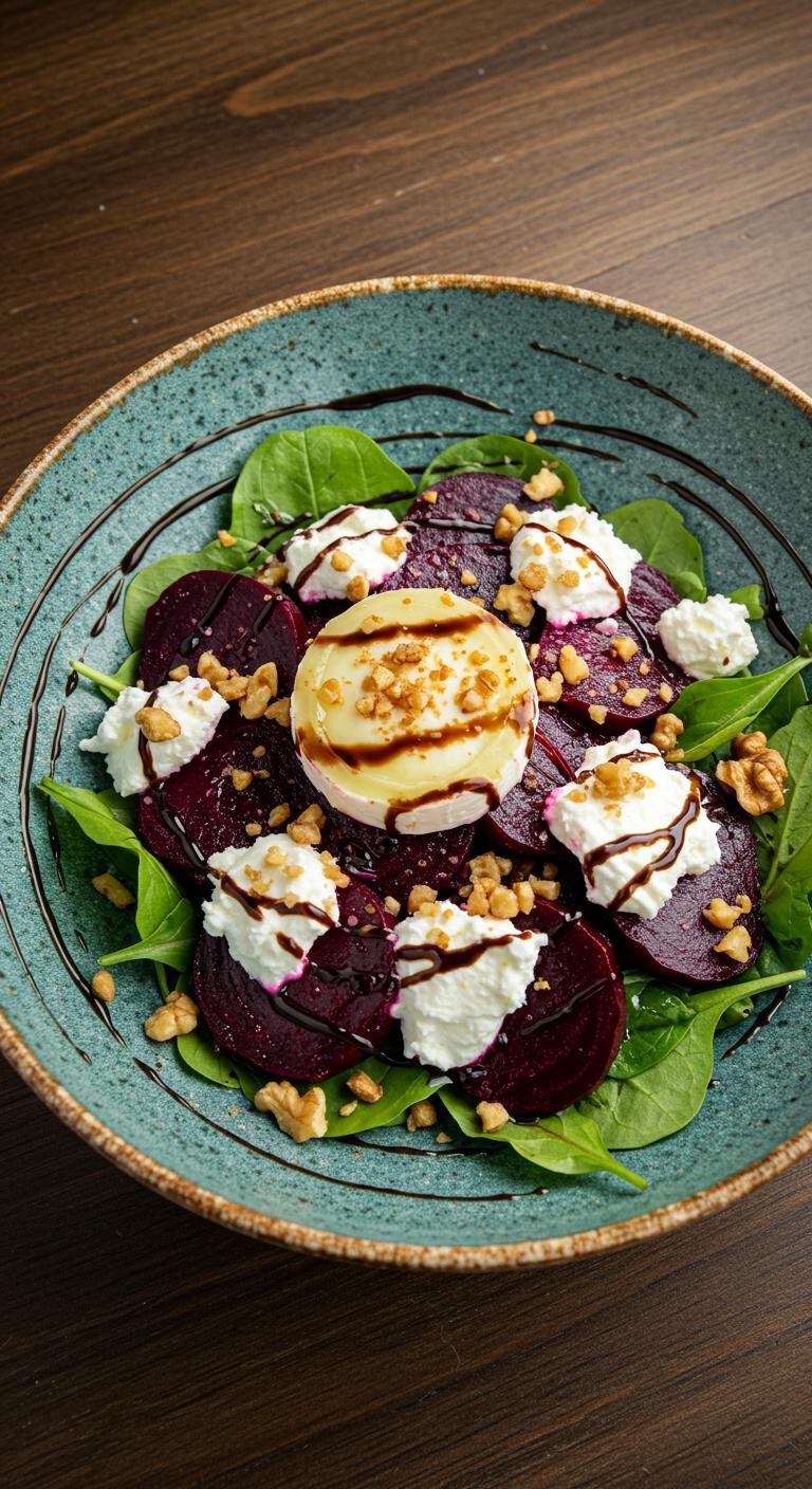 Earthy beets paired with creamy goat cheese create a delightful contrast.