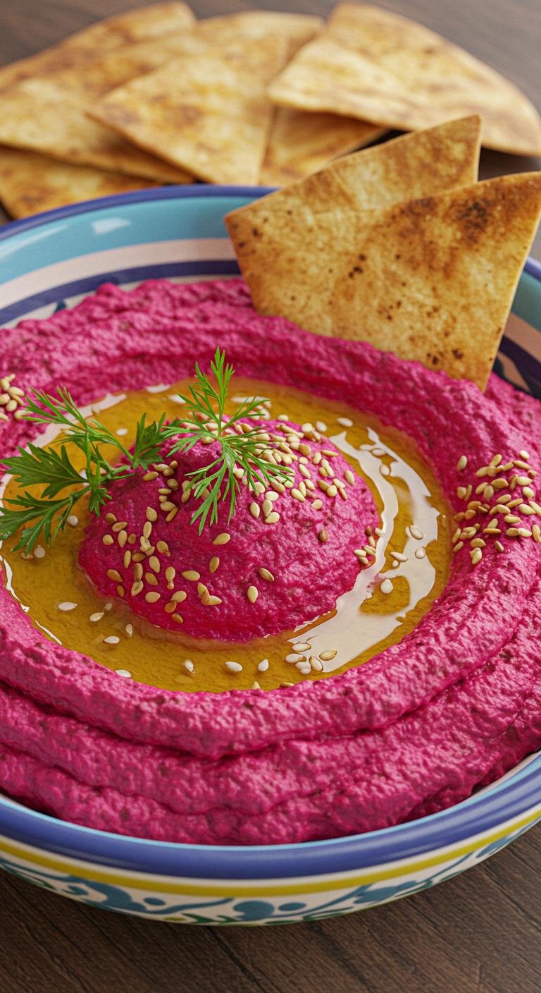 A colorful twist on traditional hummus that’s packed with flavor.