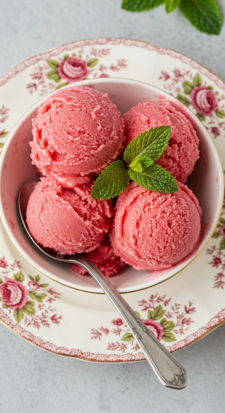 Chill out with this refreshing rose sorbet, perfect for warm-weather gatherings.