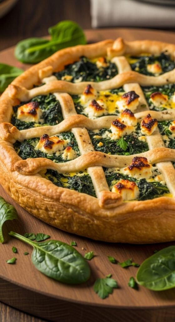 - Roll out the puff pastry and fit it into a tart pan. Whisk eggs, then mix in spinach, feta, salt, and pepper. Pour into the crust.