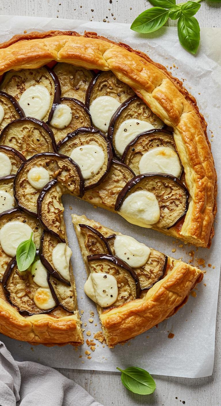 - Fill the tart shell with roasted eggplant and cheese, bake for 25 minutes.