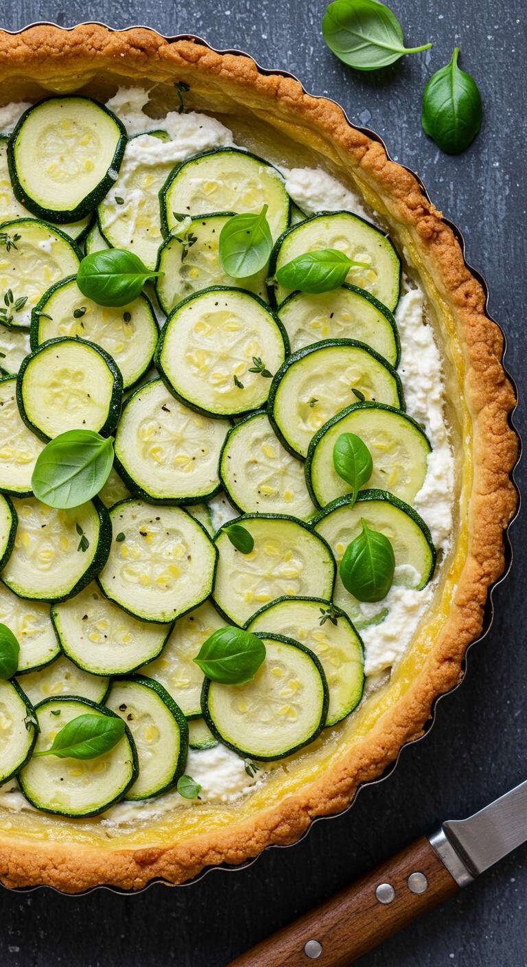 - Mix ricotta with egg, layer zucchini over it, then bake for 25 minutes.