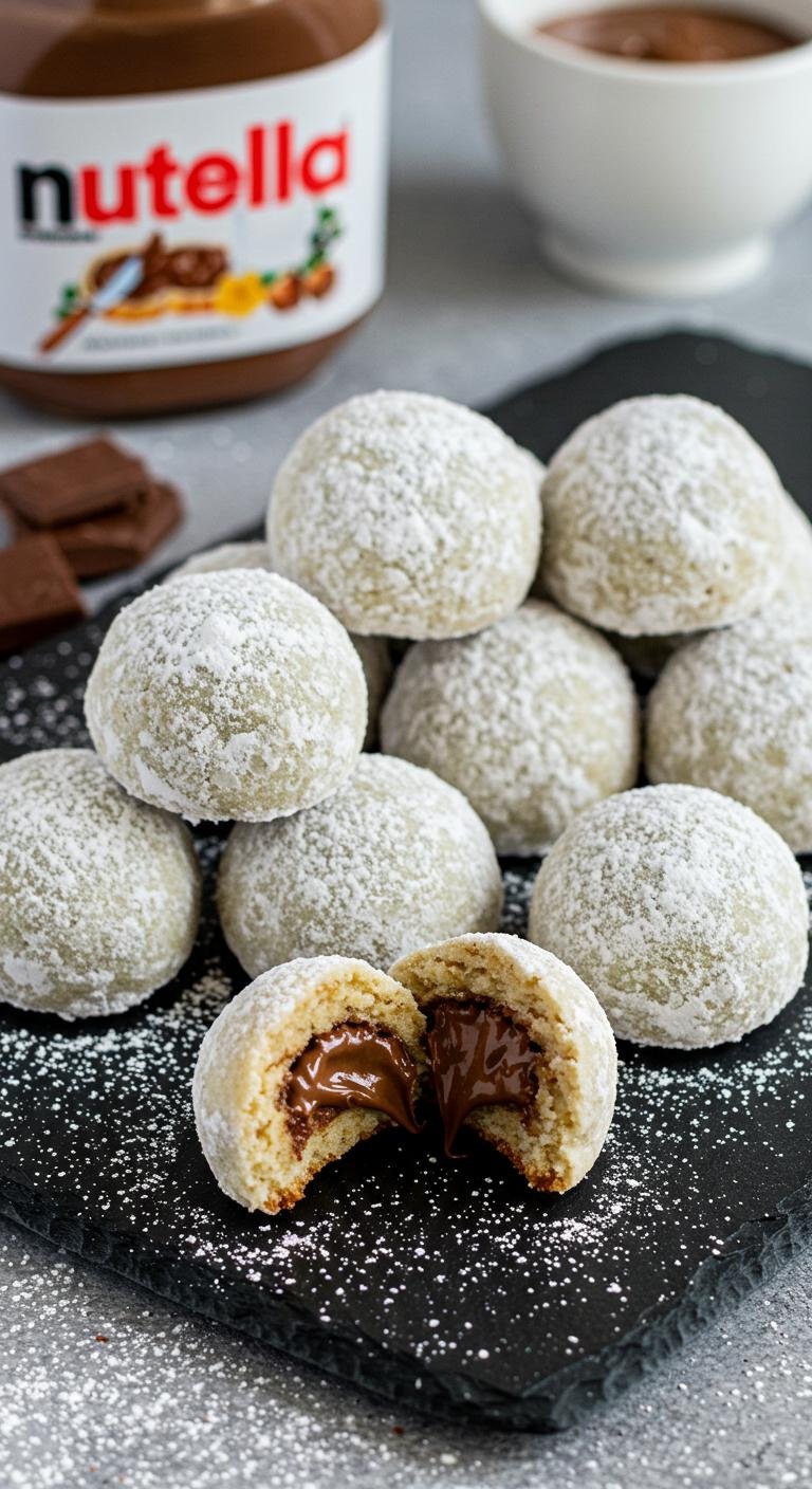 - Form into balls, fill with Nutella, and bake at 350°F for 10-12 minutes.
