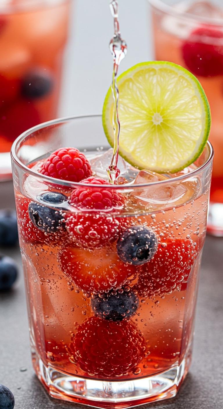 This vibrant berry mocktail is bursting with flavor and color.