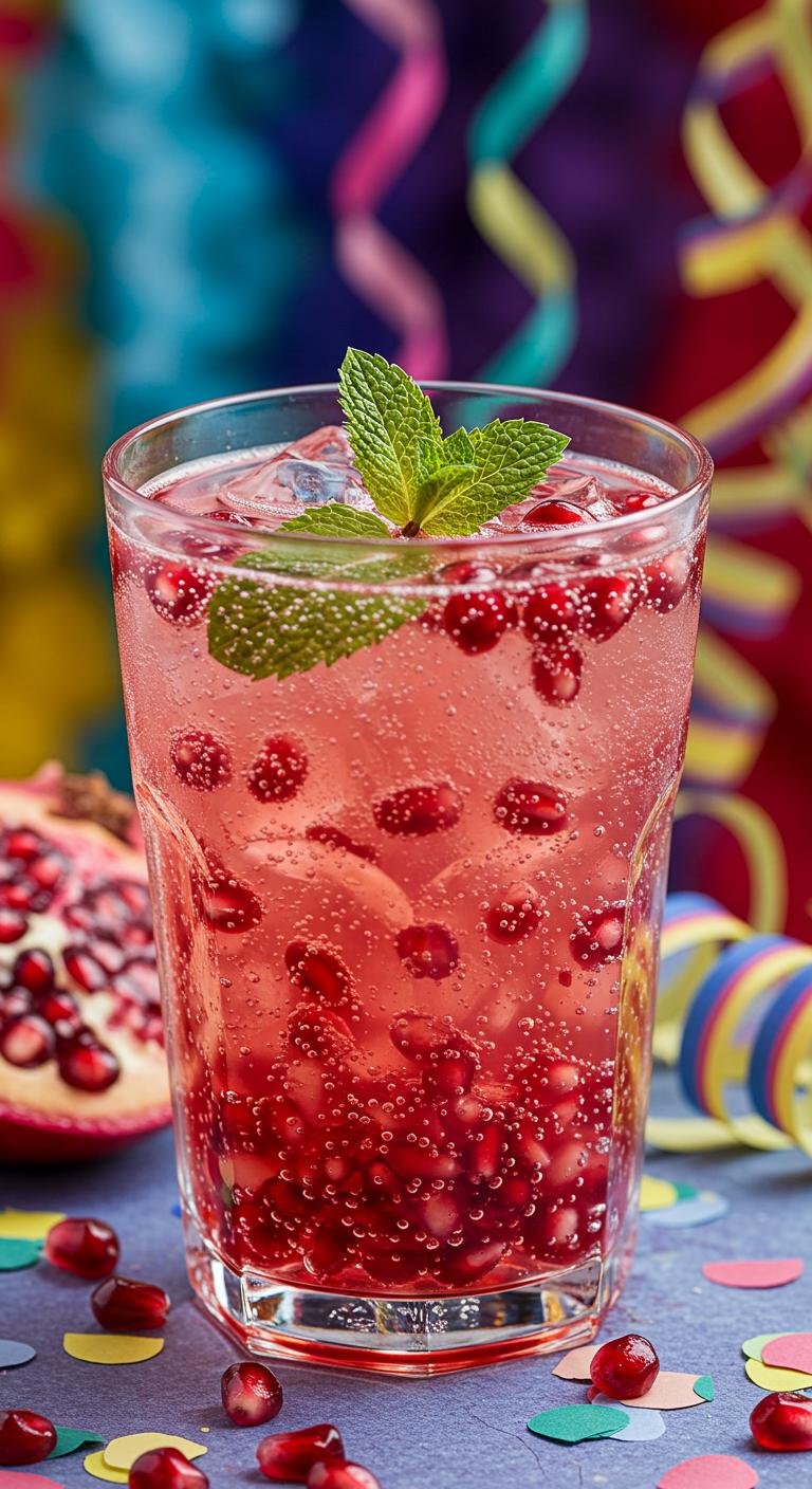 - In a glass, combine pomegranate juice and sparkling water.